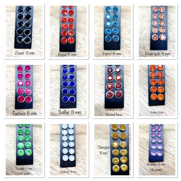 Je kunt 6 kleuren van 8 mm kiezen en 6 kleuren van 6 mm