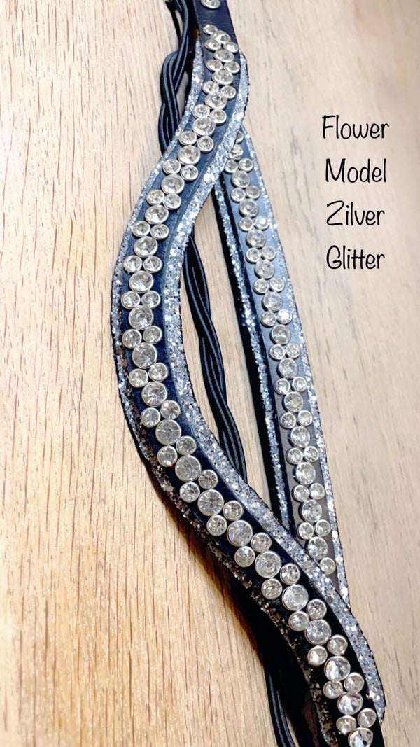 Deze Frontriem heeft een extra leren glitter rand in de kleur zilver