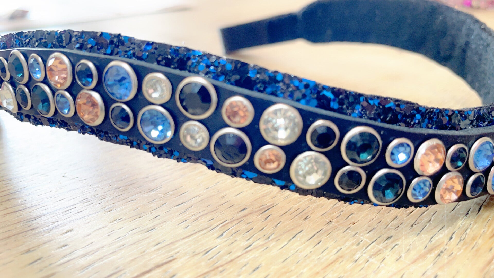 Deze Frontriem heeft een extra leren glitter rand in de kleur