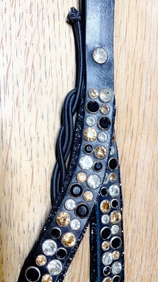 Deze Frontriem heeft een extra leren glitter rand  in de kleur zwart