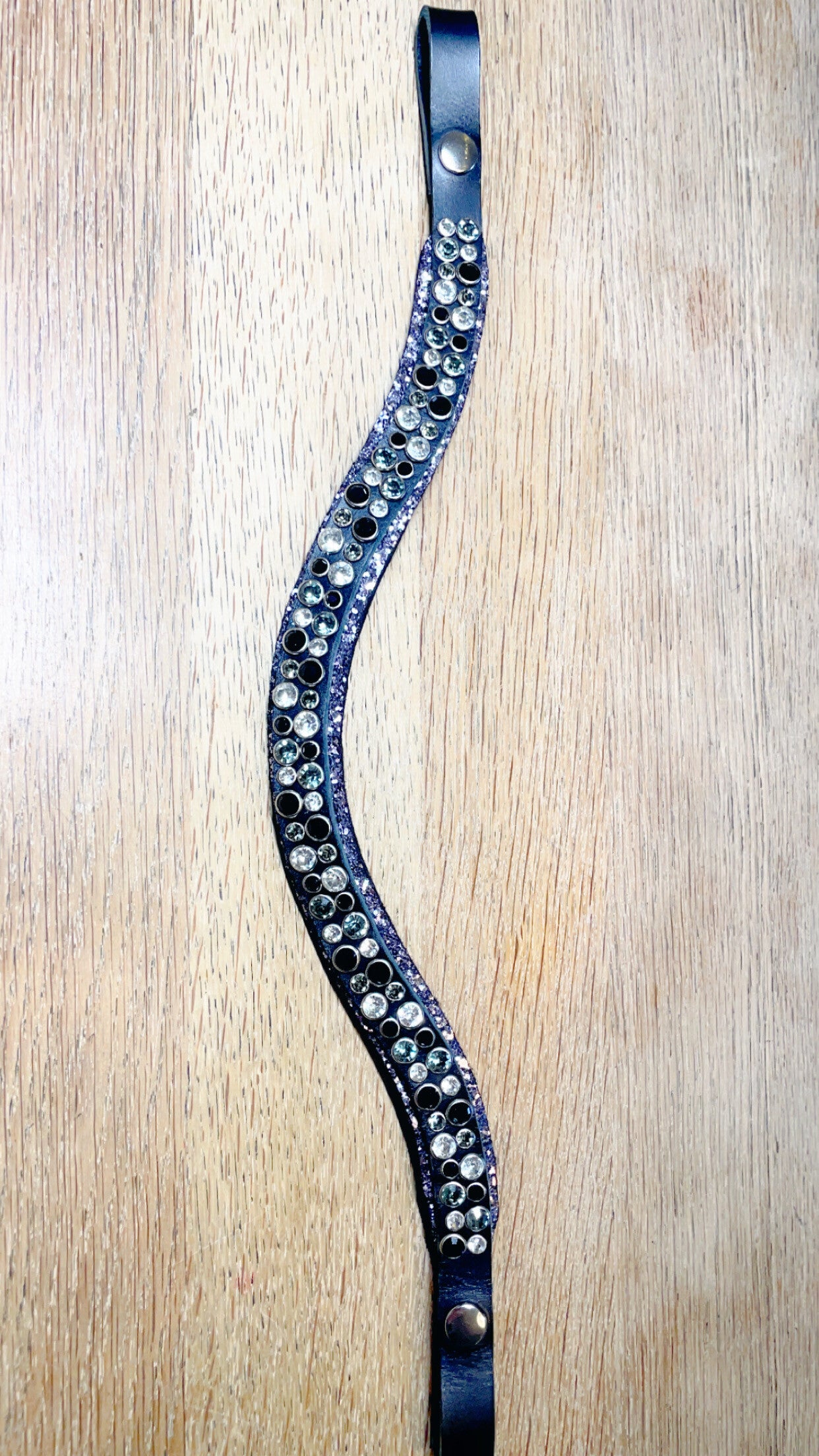 Deze Frontriem heeft een extra leren glitter rand in de kleur warm zilver