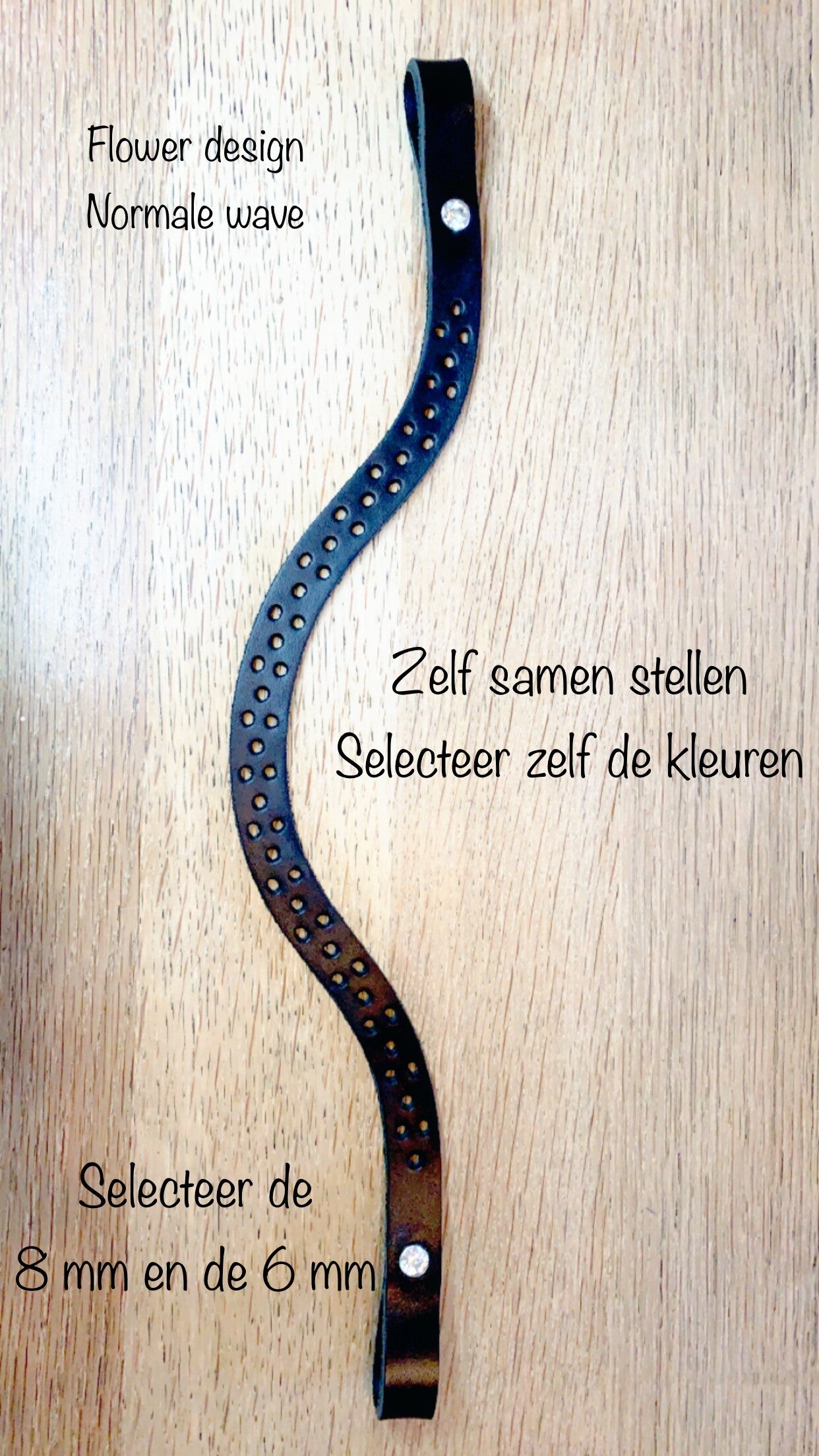 Deze frontriem is gemaakt op 1,5 cm breed leer .