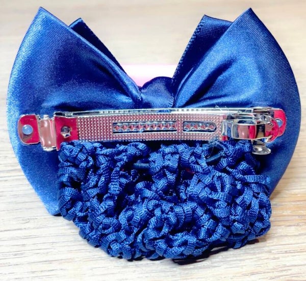 Navy blauwe haar strik met een vast haarnetje